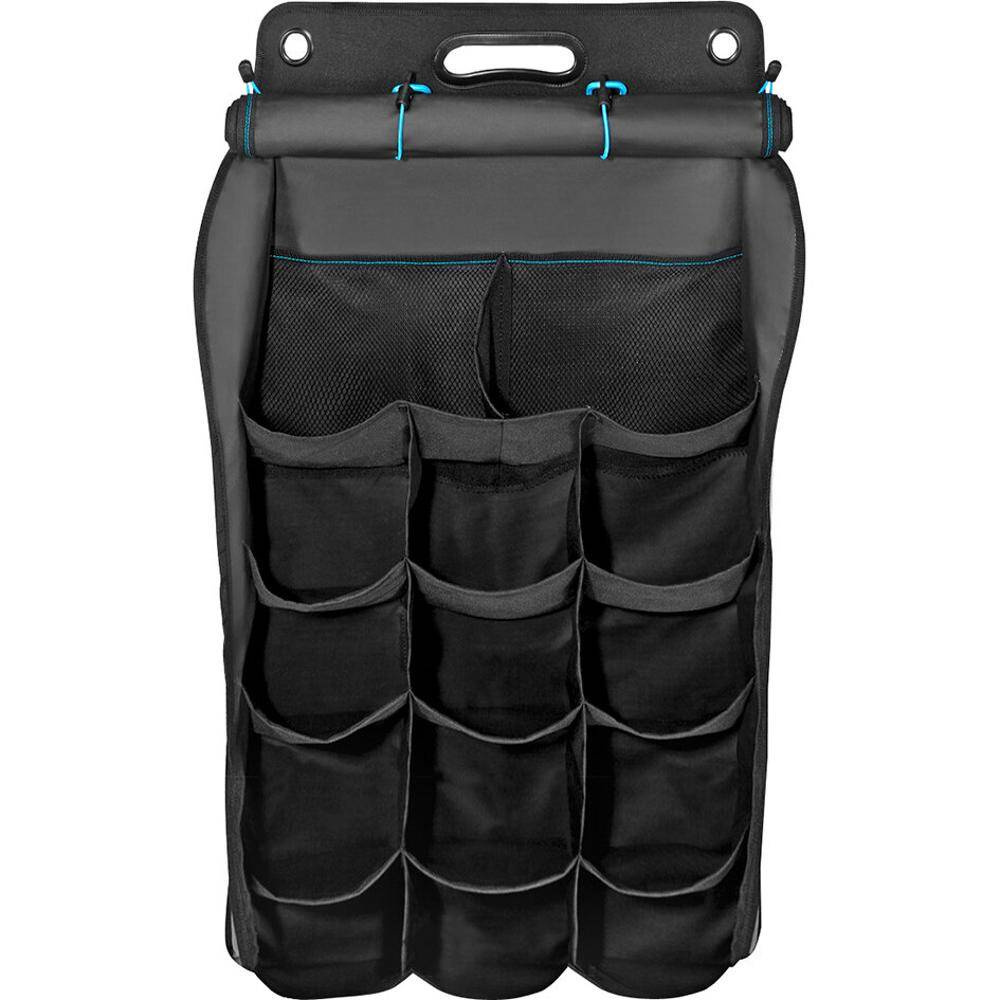 The front of this high quality, durable organiser can be rolled up or closed up by zippers to protect its content. The polyester-reinforced body can be easily connected to the POD-System 2.0 (item no. 71 990, not included in delivery) by large eyelets or firmly sewn on straps. A practical handle is integrated in the top of the body.