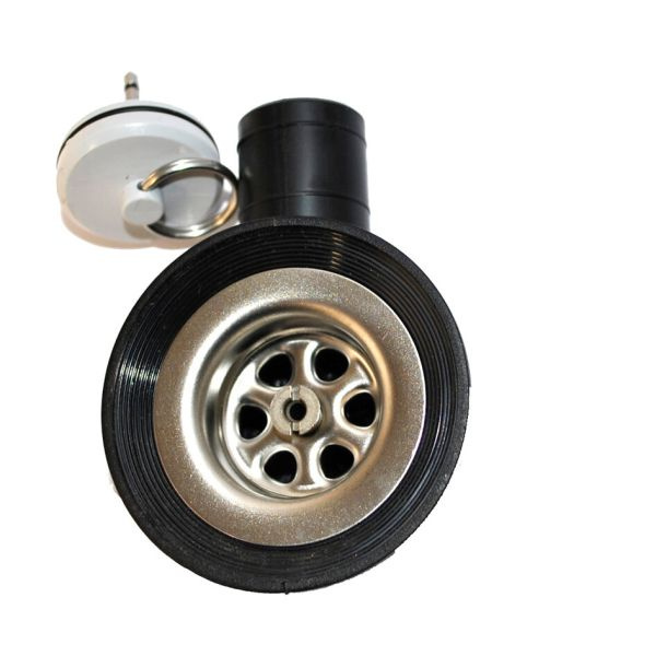 With stainless steel strainer and standard stopper. Connection (33 mm) suitable for pluggable pipe system, drain bowl made of steel.