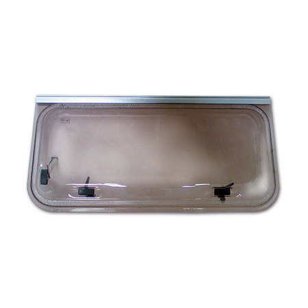 3 mm cast methacrylate double sheets, with 2 mm doubling, anodised aluminum hinges.Including mounting accessories.Dimensions: 1450 x 550 mm.Colour bronze.