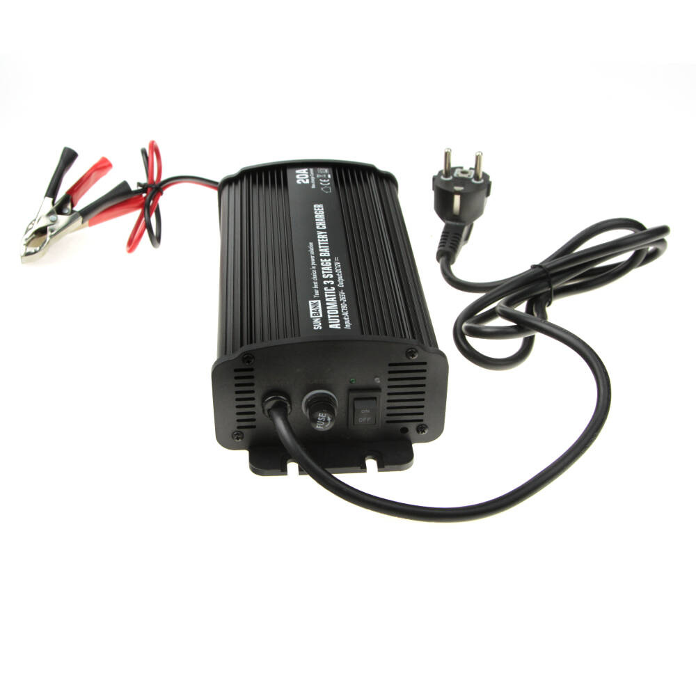 Prostownik ładowarka 12 woltowych akumulatorów kwasowo-ołowiowych, żelowych i AGM ładująca akumulatory prądem 20 Amper SUNBANK