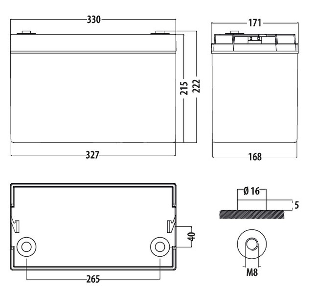 Kompaktowe wymiary sprawiają, że mieszczą się w typowych komorach na baterie i schowkach. Akumulatory AGM są odporne na mróz do -40°C. Montaż można wykonać w dowolnej pozycji, np. leżąc na boku lub stojąc pionowo (nie montować akumulatora nad głową, biegunami skierowanymi w dół).
