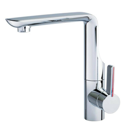 Nowoczesna bateria z tworzywa sztucznego z obrotową wylewką (360°), ceramicznym wkładem i odkręcanym wylotem wody. W zestawie klucz do czyszczenia. Łatwa do czyszczenia powierzchnia. Elastyczne węże nylonowe: ø& 10 mm; długość gwintu: 40& mm; gwint: 1".