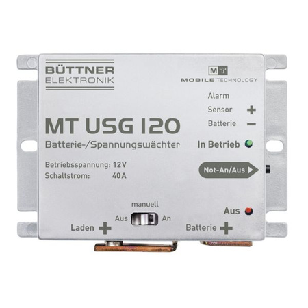 BÜTTNER Dometic Battery/Voltage Monitor MT USG 120 to niezawodny monitor napięcia i zabezpieczenie akumulatora, idealny do kamperów, caravanów i pojazdów kempingowych. Podłączany między akumulatorem a odbiornikami 12 V, chroni zarówno baterię, jak i podłączone urządzenia przed szkodliwym niedociśnieniem (automatyczne wyłączenie przy 10,7 V, co zapobiega głębokiemu rozładowaniu) oraz przeciążeniem (wyłączenie przy 15,5 V). Dzięki wysokiej mocy przełączania – 120 A ciągłej / 200 A krótkotrwałej – poradzi sobie z wymagającymi instalacjami, takimi jak oświetlenie, lodówki czy pompy wodne.