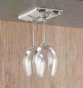 Uchwyt na kieliszki do czerwonego wina do bezpiecznego umieszczenia 2 kieliszków z nóżką o maks. Ø 86 mm. Bezpieczny i łatwy w montażu wiszącym lub pionowym w szafce/półce. Zestaw śrub w zestawie.