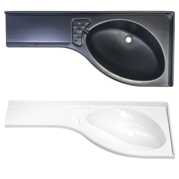 Odkryj Comet Corner Sink, tray on the left, black – solidny narożny zlew od renomowanej marki Comet, idealny do łazienek w kamperach i caravanach. Wykonany z wytrzymałego polistyrenu o grubości 4 mm, zapewnia długoletnią trwałość i odporność na codzienne użytkowanie w podróży. Lewa taca jest w pełni przycinana, co pozwala na perfekcyjne dopasowanie do Twojej przestrzeni, a ø 30 mm odpływ kompatybilny z akcesoriami Comet ułatwia montaż i eksploatację. Kompaktowe wymiary ok. 345 x 345 x 116 mm idealnie oszczędzają miejsce, a stylowy czarny kolor dodaje elegancji wnętrzu pojazdu.