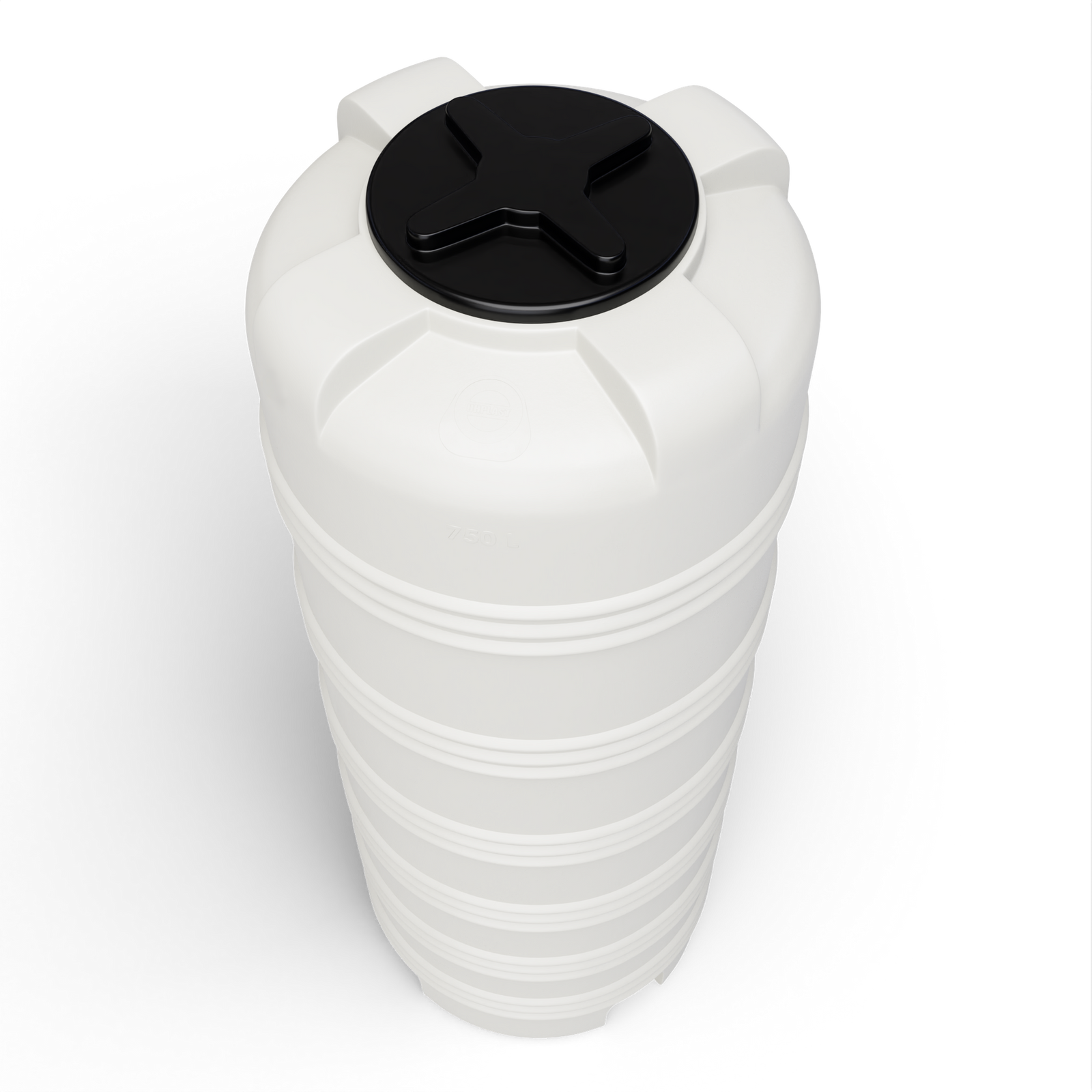 Pionowa cylindryczna beczka plastikowa V-750 o pojemności 750 l idealna do przechowyłania płynów np. wody zarówno szarej jak i pitnej