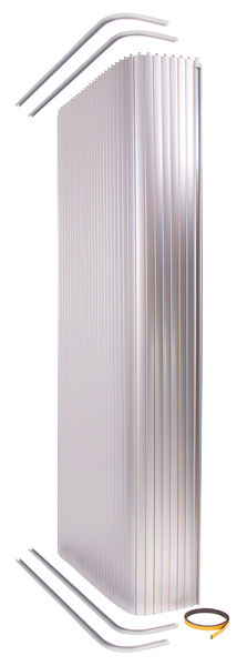 Drzwi roletowe z tworzywa sztucznego w kolorze srebrnym, z uchwytami na obu końcach. Można skrócić w każdym przypadku.