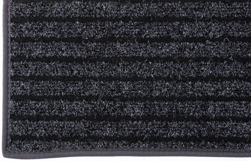 Dywaniki pod deskę rozdzielczą, pod drzwi, do bagażnika i do części mieszkalnej. Materiał: Włókno syntetyczne 1900 g/m2 w kolorze szarym i antracytowym, każdy z czarnymi paskami.