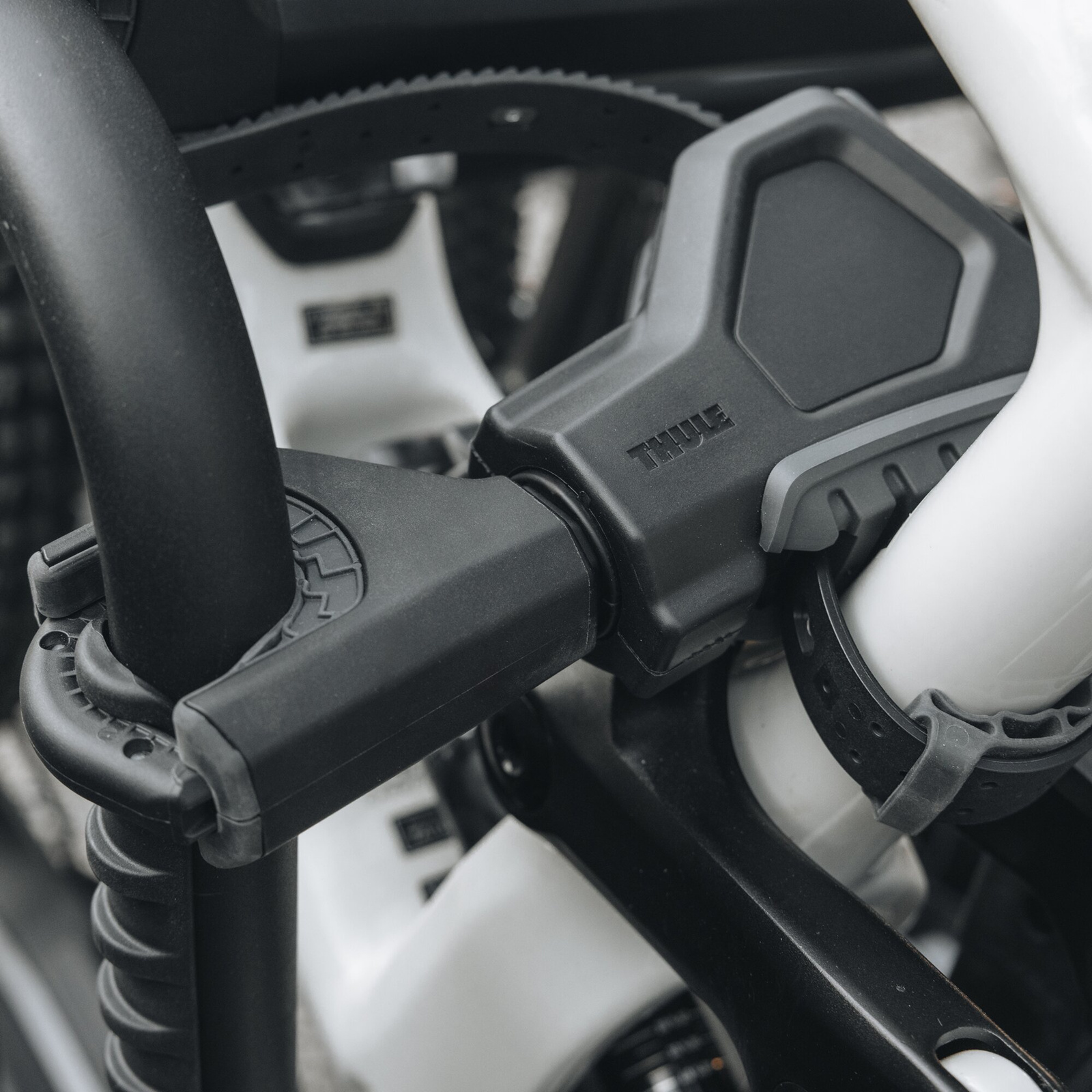 Thule EasyFold 3 oferuje maksymalną elastyczność i bezpieczeństwo podczas transportu rowerów. Pasuje do szerokiej gamy ram rowerowych o średnicy od 20 do 90 mm, co pozwala na transport niemal każdego roweru bez żadnych problemów. Praktyczne ramię do roweru z funkcją zatrzaskowego montażu i demontażu ułatwia załadunek i rozładunek. Dzięki możliwości całkowitego złożenia Thule EasyFold 3 można przechowywać w kompaktowych rozmiarach, nawet w małych przestrzeniach. Elegancki, nowoczesny design ze zintegrowanym oświetleniem doskonale komponuje się z każdym pojazdem, zwiększając jednocześnie widoczność i bezpieczeństwo na drodze. Praktyczny mechanizm składania za pomocą pedału nożnego zapewnia dostęp do bagażnika nawet wtedy, gdy bagażnik jest załadowany. Montaż bagażnika rowerowego na haku holowniczym jest prosty i szybki dzięki samostabilizującemu połączeniu. Aby zapewnić jeszcze większy komfort, Thule EasyFold 3 wyposażono w ergonomiczne uchwyty, które ułatwiają transport. Wzmocniony stalą pas oferuje stabilne podparcie dla szerokiej gamy ram rowerowych, gwarantując tym samym wysoki poziom bezpieczeństwa podczas transportu. Thule EasyFold 3 to idealny wybór dla każdego, kto ceni sobie przemyślane, łatwe w obsłudze i bezpieczne rozwiązanie pozwalające zabrać rower ze sobą w podróż. Podpory i ramiona mocujące są blokowane. Spełnia wymagania normy City Crash.