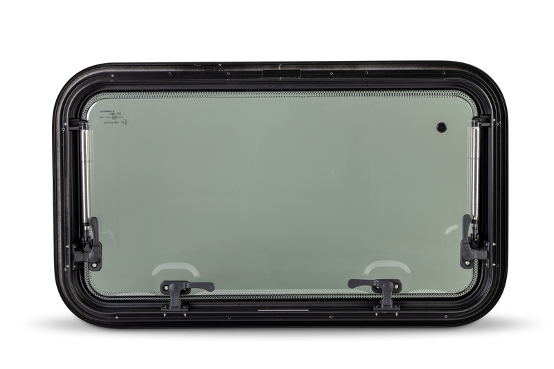 Nowość w segmencie szyb samochodowych! Okno RW Fusion łączy w sobie zewnętrzną szybę wykonaną z prawdziwego szkła z wewnętrzną szybą wykonaną ze szkła akrylowego. SZKŁO AKRYLOWE, SZKŁO BEZPIECZNE, PODWÓJNE SZYBY, PRZEPUSZCZALNOŚĆ ŚWIATŁA: 30%, PANEL WYGIĘTY DO WEWNĄTRZ, ODPORNY NA PROMIENIE UV, Z POZYCJĄ WENTYLACYJNĄ, EKSPOZYTOR STALOWY (BEZ STALOWY), MATERIAŁ RAMY: ALUMINIUM, DO ŚCIAN O GRUBOŚCI 30-40 MM, W TYM. RAMA MONTAŻOWA, RAMA OKNA Z PROMIENIEM NAROŻNIKA: 75 mm, ECE R43. Wycięcie szer. x wys. 900 x 450 mm, wymiary zewnętrzne