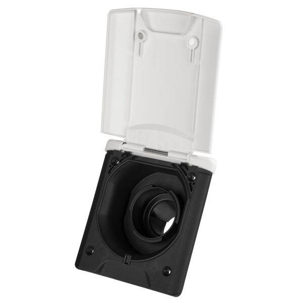 Z pokrywą na zawiasach i zatrzaskiem magnetycznym, bez korka wlewu. Przyłącze węża ø 40 mm.