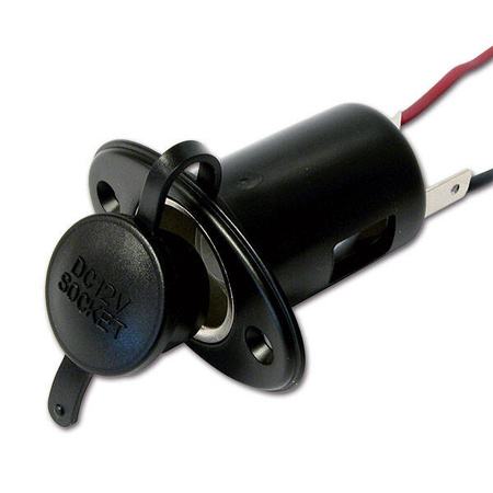 12 V pojedyncze gniazdo zapalniczki samochodowej do montażu na panelu. Pojemność 10 A.Zaślepka. Podłączenie przez 6,3 mm faston.Opakowanie typu blister.