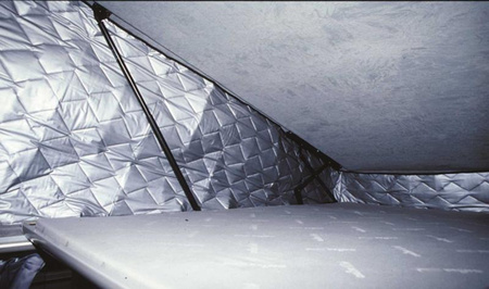 Mata termiczna Isoflex do izolacji dachów sypialnych. 7-warstwowa izolacja chroniąca przed ciepłem i zimnem. Montaż wewnątrz: za pomocą rzepów i zatrzasków.