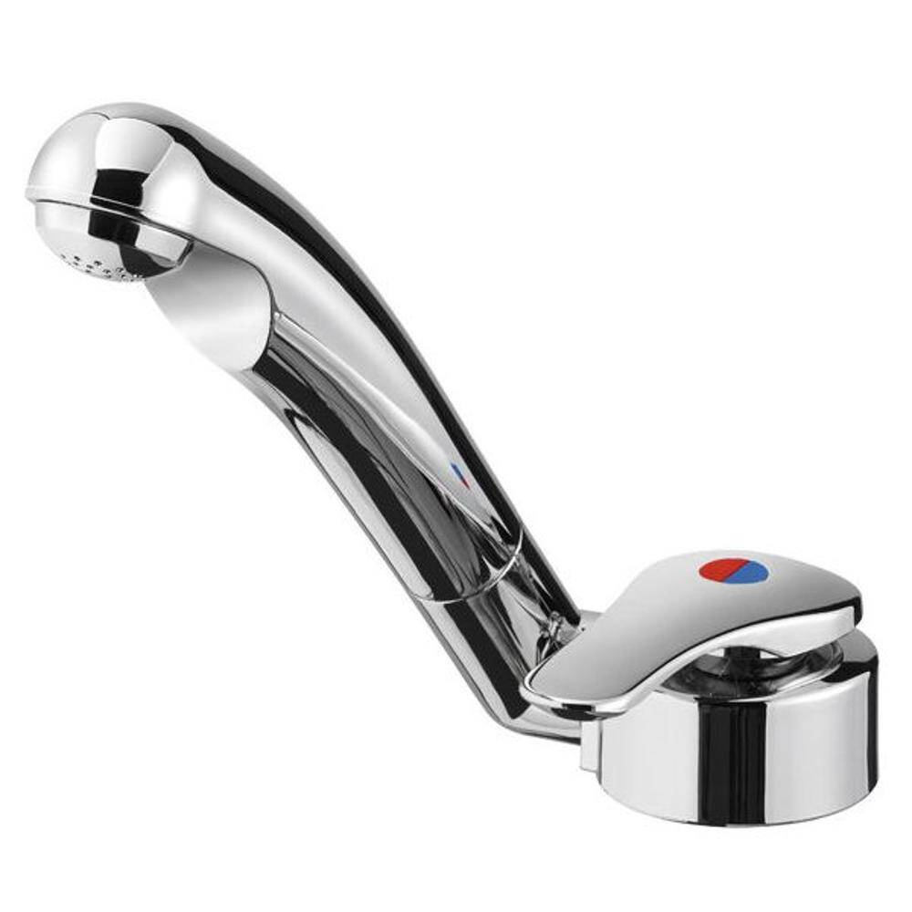 Wysokiej jakości bateria kuchenna z ceramiczną głowicą i pionowo obrotową wylewką, zaprojektowana specjalnie z myślą o zastosowaniach w kamperach, przyczepach kempingowych i łazienkach o ograniczonej przestrzeni.