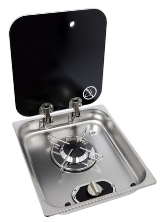 Płyta grzewcza ze stali nierdzewnej z czarną szklaną pokrywą – 1 palnik SR.