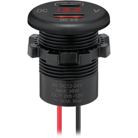 Ładowarka gniazdo USB z wyświetlaczem Wentronic USB-A, USB-C 18 W