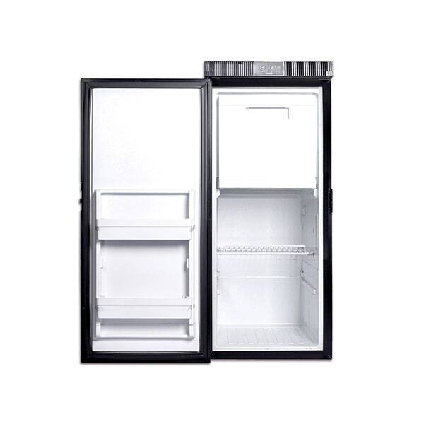 Lodówka kompresorowa 75 l z zawiasem po lewej stronie.Kompaktowa, cicha i o nowoczesnych liniach, idealnie integruje się z wystrojem każdego pojazdu.Z 8-litrową zamrażarką zdolną do chłodzenia do -18 °C, 60-litrowa lodówka chłodzi od +5 °C do +15 °C z 5-stopniową regulacją za pomocą panelu sterowania LED.Z dwiema półkami o regulowanej wysokości, dwiema szufladami na owoce i warzywa oraz dwiema półkami w drzwiach.Zamrażarka w temperaturze -18 °C.Z wewnętrznym oświetleniem LED.