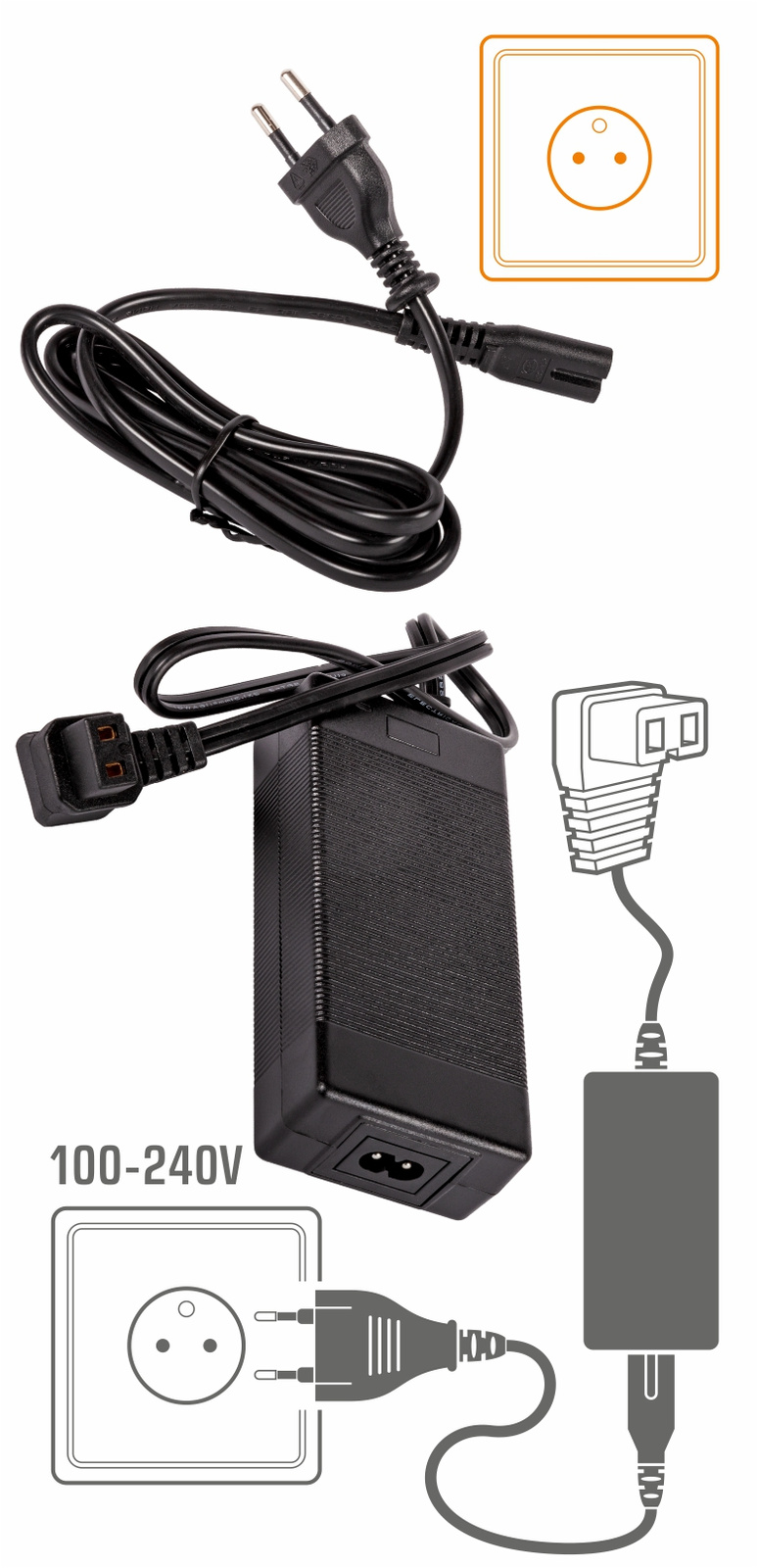 - Zasilanie prądem zmiennym ‑ gniazdo sieciowe (100‑240V ‑ okablowanie w zestawie)