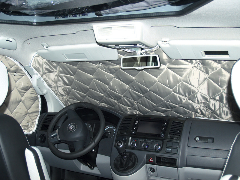 Szare maty termiczne wykonane są z 9-warstwowego materiału Isoflex. Odbijają światło słoneczne, izolują od ciepła i zimna, a także pełnią funkcję ekranu zapewniającego prywatność. Łatwy montaż dzięki dołączonym przyssawkom.