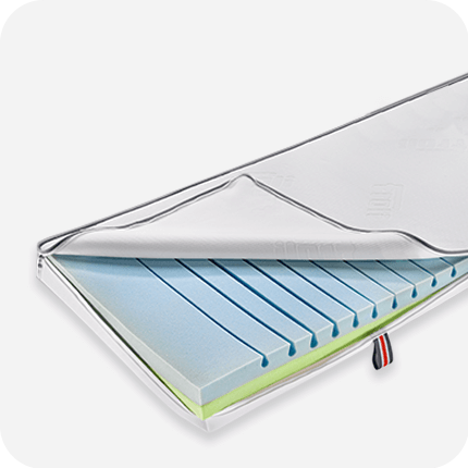 Optymalne, dostosowane do ciała wyrównanie nacisku i spokojny sen dzięki innowacyjnej technologii wielostrefowej. Zimna pianka o otwartych komórkach zapewnia zdrowe środowisko snu i wspomaga regenerację krążków międzykręgowych.