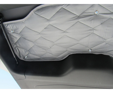 Szare maty termiczne wykonane są z 9-warstwowego materiału Isoflex. Odbijają światło słoneczne, izolują od ciepła i zimna, a także pełnią funkcję ekranu zapewniającego prywatność. Łatwy montaż dzięki dołączonym przyssawkom.