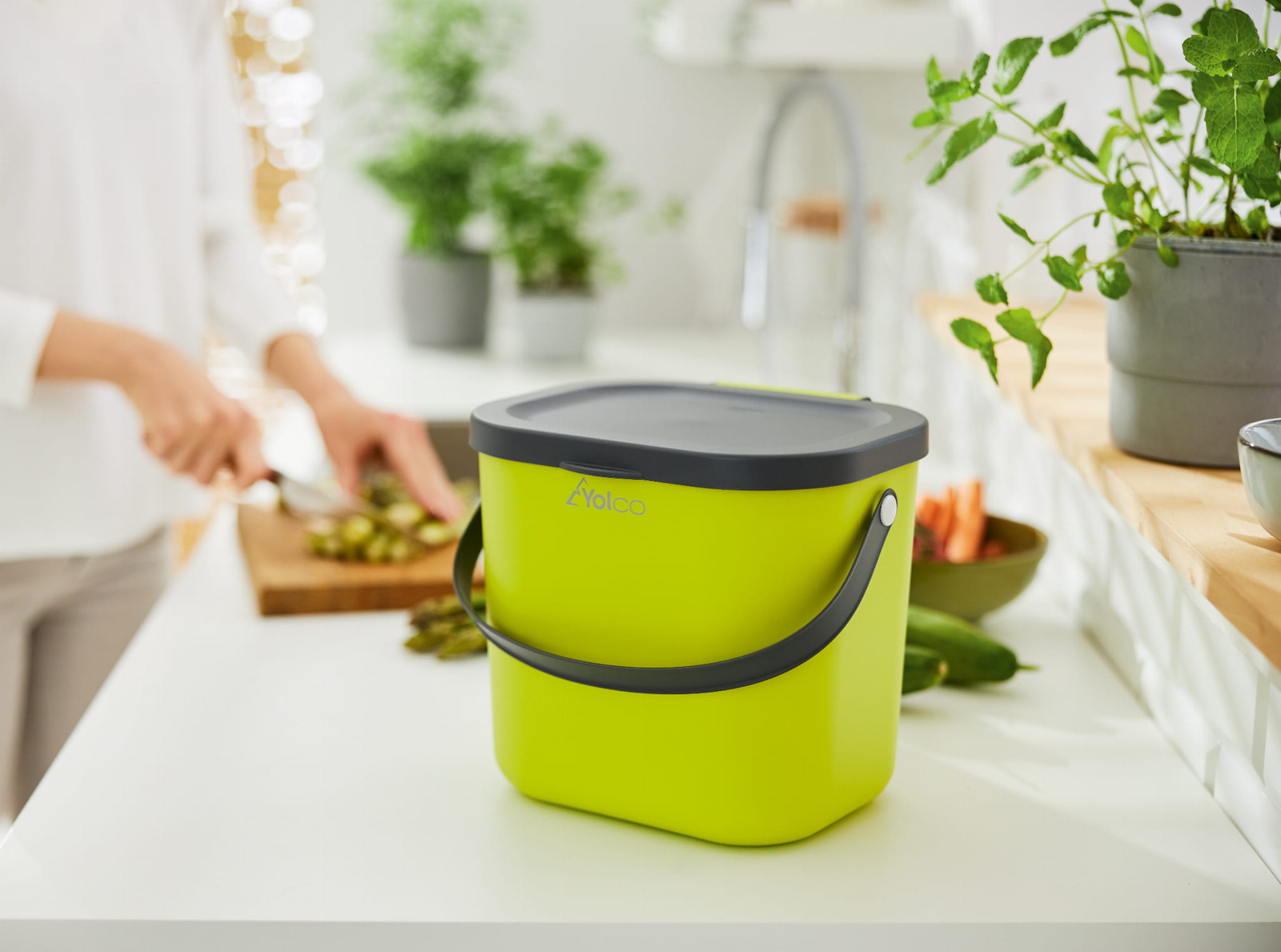 Dzięki zaokrąglonej konstrukcji i łatwemu w pielęgnacji materiałowi, pojemnik