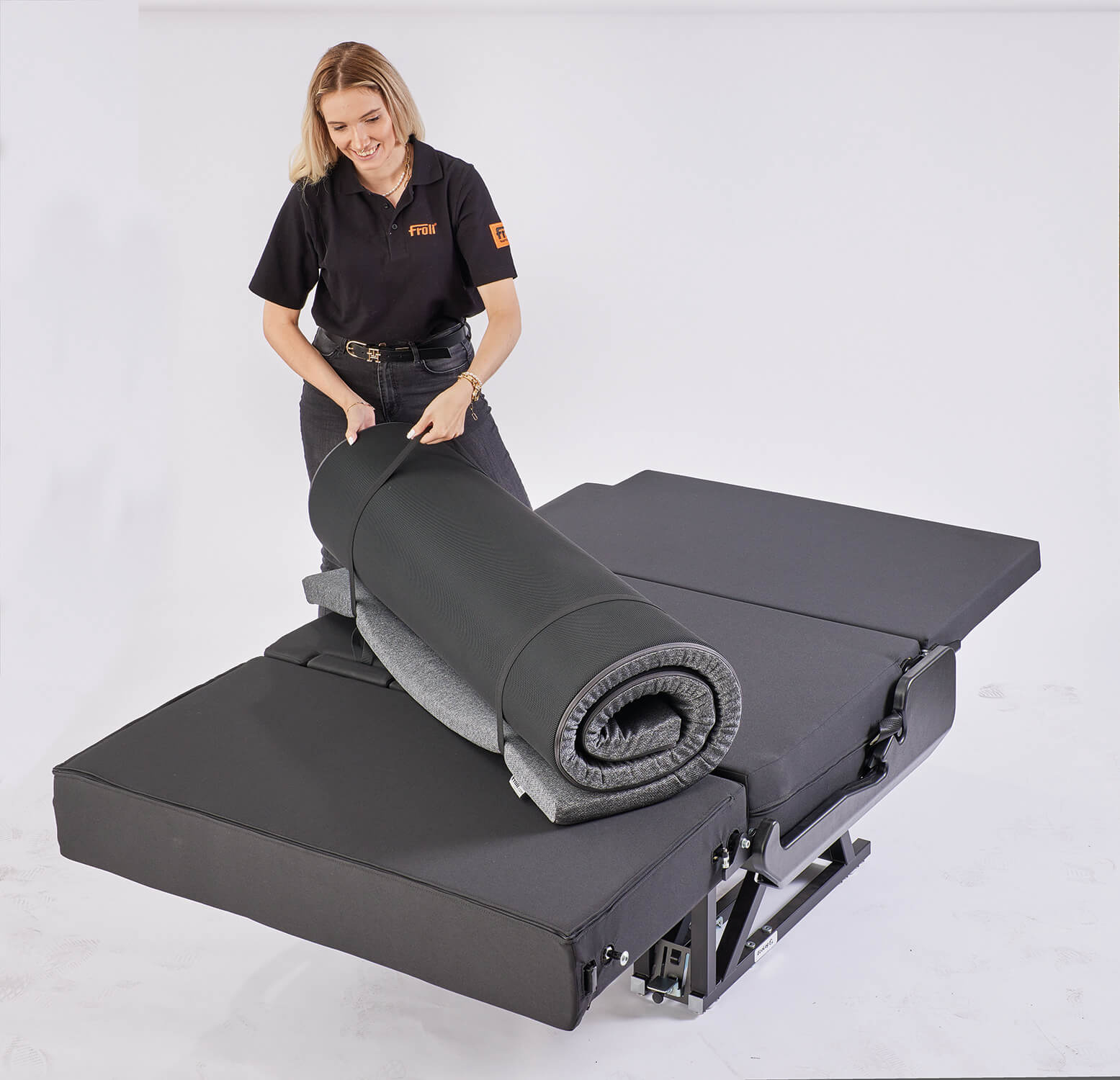 Jeśli posiadasz w swoim pojeździe kanapę Schnierle SL3, pokochasz nową poduszkę do spania Froli. Ta wysokiej jakości poduszka do spania jest dostępna w 4 rozmiarach i jest dostarczana w praktycznej torbie transportowej. Po prostu zwinięty w pudełku, z łatwością mieści się w każdym pojeździe.