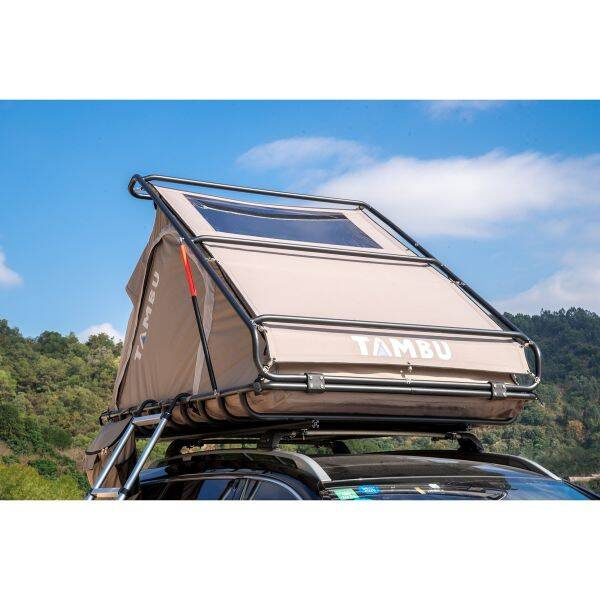 Namiot dachowy można przymocować w kilku krokach za pomocą bagażnika dachowego. W zestawie znajduje się wygodny materac dmuchany TPU, drabina rozkładana i pokrowiec ochronny. Namiot ten jest całkowicie wolny od PVC i jest jednym z najlżejszych namiotów dachowych na rynku. Pomimo prostej konstrukcji oferuje duży komfort spania. Dzięki osłonie przeciwdeszczowej, którą można przymocować do namiotu od zewnątrz w przypadku deszczu, w namiocie będziesz mieć spokojniejszą noc.