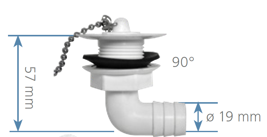 Odpływ kątowy z korkiem do zlewu otwór 30mm odpływ 19mm FAWO