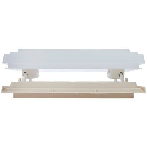 Okno dachowe MPK Skylight model 42K posiada małą kopułę, ramę wewnętrzną z moskitierą i roletą zaciemniającą oraz ramiona wysięgnikowe z blokadą.