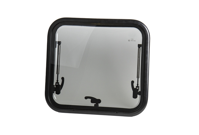 Carbest Comfort Ausstellfenster mit doppelwandigem, getöntem Acrylglas mit UV-Schutz und hochwertigem Rahmen mit Aluminiumlegierung. Scheibe außen flach und innen gewölbt. Inkl. stufenloser Edelstahl-Teleskopaussteller. Für eine Wandstärke von 28-32 mm ausgelegt.