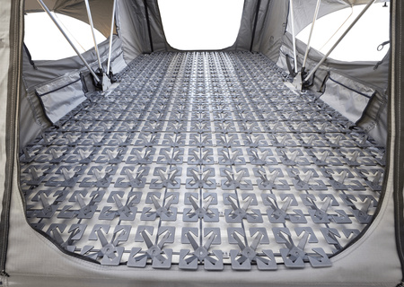 Froli Tent Lounge zapewnia optymalny komfort snu podczas przygody pod namiotem dachowym. Maty sprężynowe o wysokości 3 cm zapewniają uczucie średnio-twardego leżenia, skok sprężyny do 2,5 cm zapewnia idealne odciążenie i wspomaga skuteczną cyrkulację powietrza, aby zapobiec tworzeniu się wilgoci i pleśni. Doskonale dopasowująca się do pakietów podstawowych i rozszerzeń, konstrukcja może być łatwo instalowana i indywidualnie dostosowywana. Należy zwrócić uwagę na dodatkową wysokość montażu wynoszącą 3 cm i sprawdzić kompatybilność z namiotem dachowym.