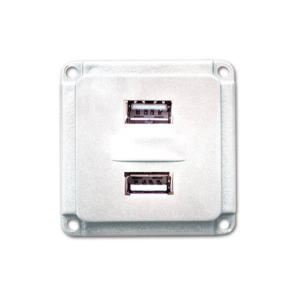 Gniazdo USB Mobile Plus dual, o napięciu 5 V i natężeniu 2 A.Białe, z niebieskim podświetleniem.Kompatybilne z serią GALA XL.Niekompatybilne z urządzeniami iOS.
