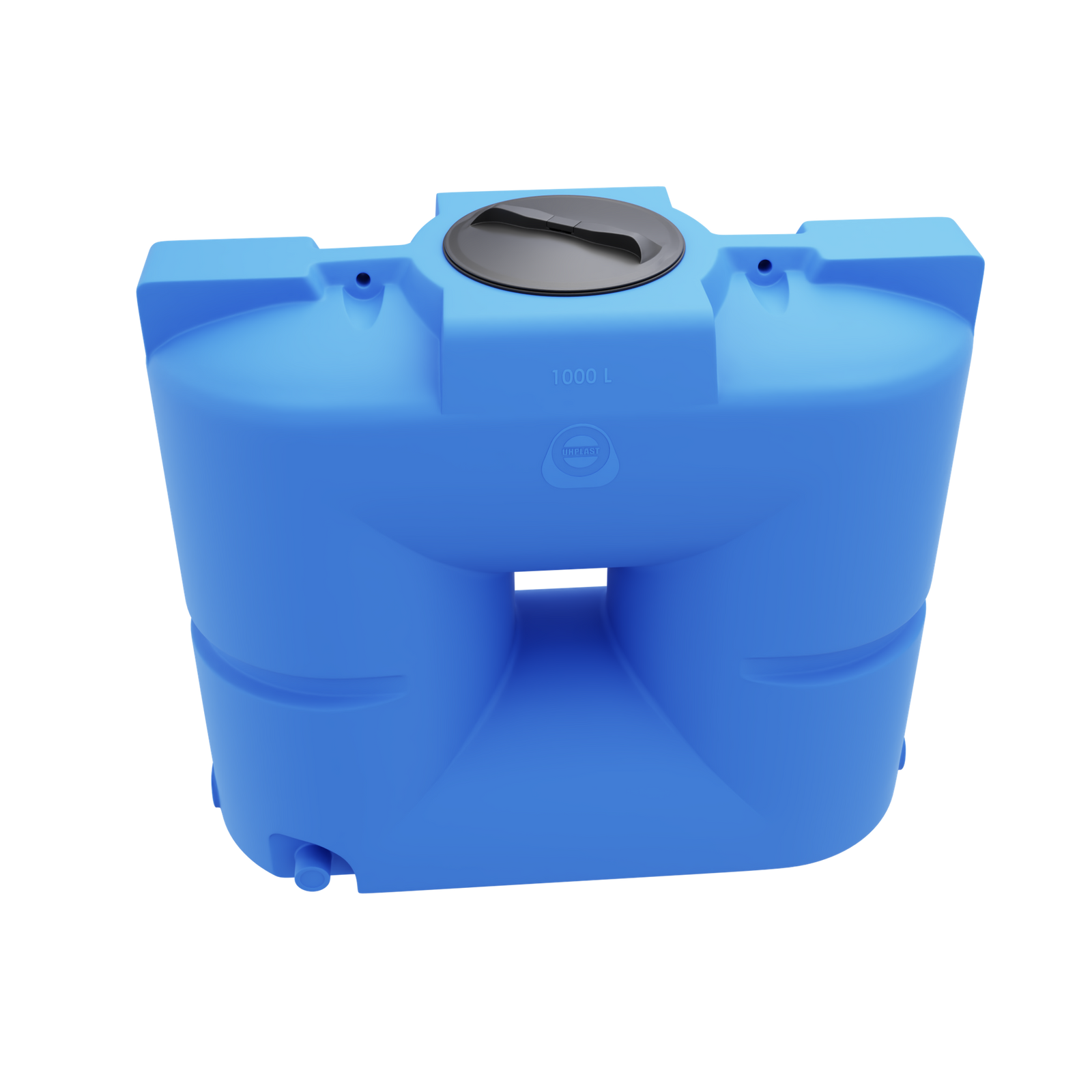 Płaski plastikowy zbiornik В-1000 NEW o pojemności 1000 l to kompaktowe i wytrzymałe rozwiązanie do stacjonarnego przechowywania deszczówki, wody pitnej, nawozów oraz cieczy o gęstości do 1,1 g/cm3.