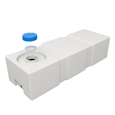 Poziomy zbiornik Р-120 o grubszej ściance (3.5 mm) z polietylenu o pojemności 120 l to solidne i kompaktowe rozwiązanie do stacjonarnego przechowywania wody szarej lub pitnej, nawozów oraz innych cieczy o gęstości do 1,4 g/cm3.