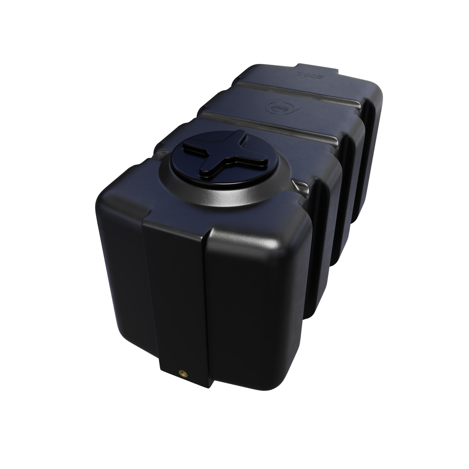 Prostokątny zbiornik plastikowy SG-200 o pojemności 200 l, różni się od zbiorników SK-100 wagą i rozmiarem. Waga jest niższa, a także cena jest niższa.