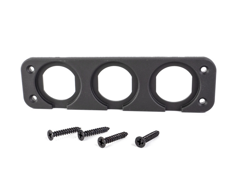 Potrójny wbudowany panel przedni na maksymalnie 3 gniazda. Możliwość indywidualnej konfiguracji ze wszystkimi gniazdami zasilającymi / gniazdami USB / woltomierzami CARBEST.