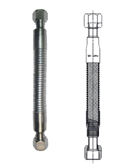 - Stainless steel corrugated inner core, a 304 stainless steel single braid.