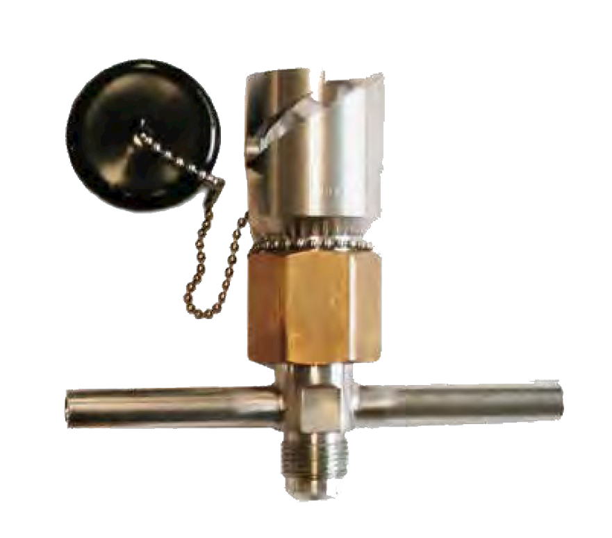 Female Quick Disconnect Vent, 10 GPM/Vent, Short Straight Handle (Cryogenic Swivel Part No. 9551-3 required) 5/8 tube size, 45deg SAE fitting end (CGA 440 ref)