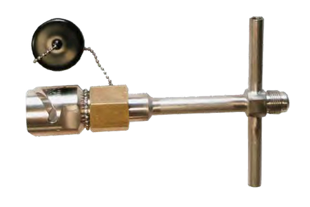 Female Quick Disconnect Vent, 10 GPM/Vent, Long Straight Handle (Cryogenic Swivel Part No. 9551-3 required) – 5/8 tube size, 45deg SAE fitting end (CGA 440 ref)