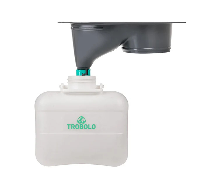 Odpowiedni do stosowania z wkładem kompostującym TROBOLO, system adaptera z sitem filtrującym niezawodnie zapobiega wszelkiego rodzaju zatykaniu, na przykład przez papier toaletowy lub śmieci. Adapter można łatwo wyjąć w celu lepszego wyczyszczenia lub wymiany po dłuższym okresie użytkowania.