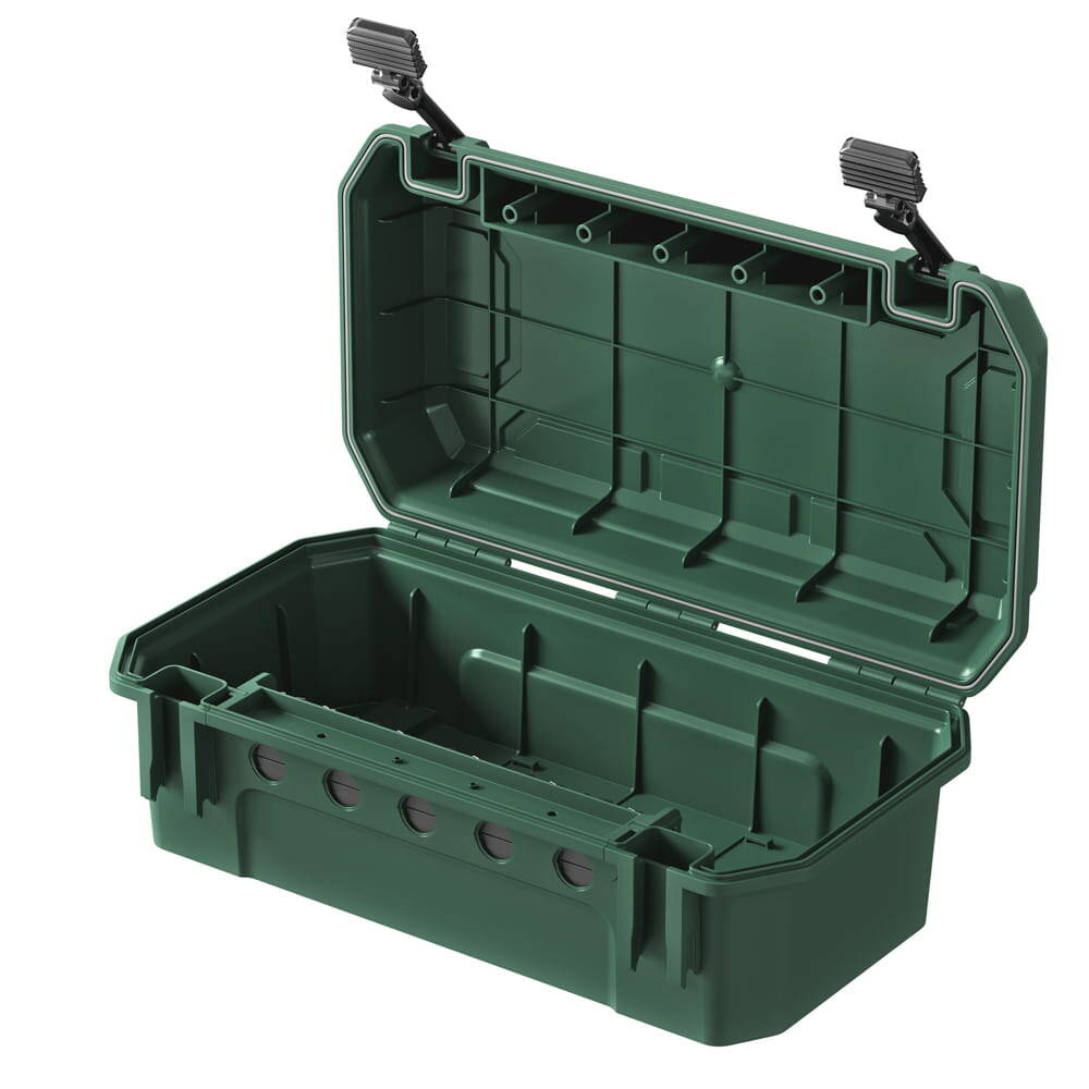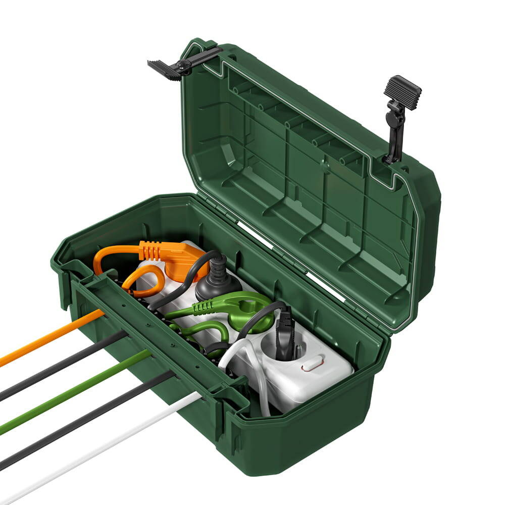 • Solidna konstrukcja pomieści między innymi listwy zasilające, przewody, wyłączniki czasowe czy odbiorniki radiowe.