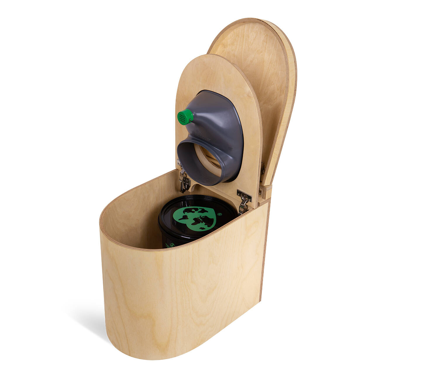 - Elastyczna toaleta kompostująca wykonana z wysokiej jakości drewna z opcjonalnym układem wydechowym.
