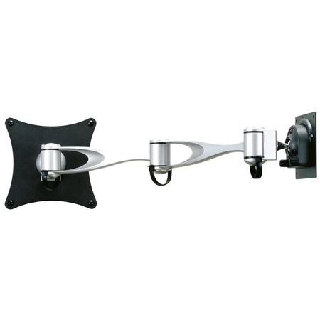 Stylowy uchwyt o maksymalnym udźwigu 8 kg. Przegub kulowy jest zintegrowany z głowicą uchwytu, umożliwiając swobodne obracanie ekranu. Zakres dostawy obejmuje płytę montażową dla VESA 75 i 100, którą wystarczy umieścić na uchwycie i zablokować nakrętką motylkową. Dzięki temu urządzenia można łatwo zdemontować i schować, gdy nie są używane.