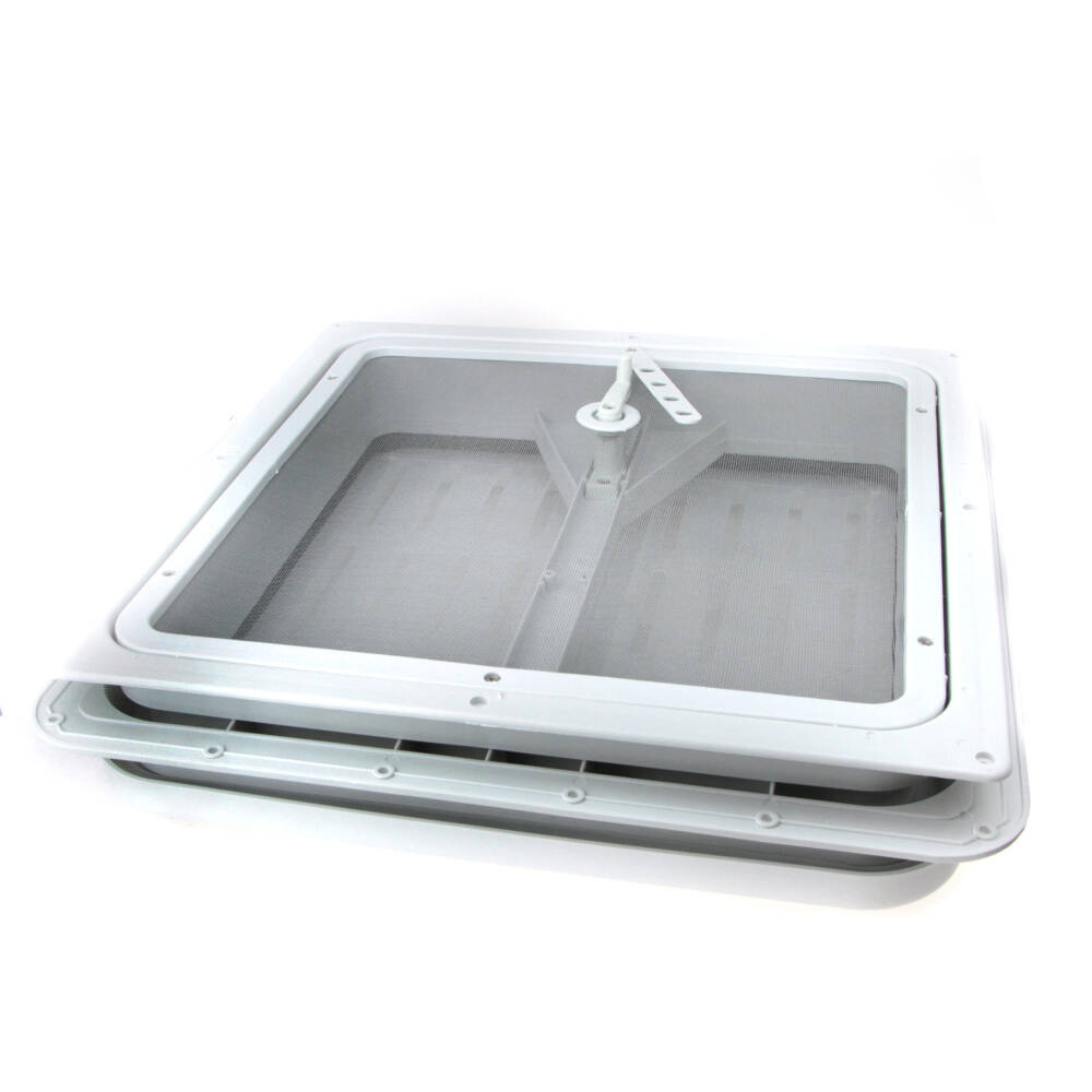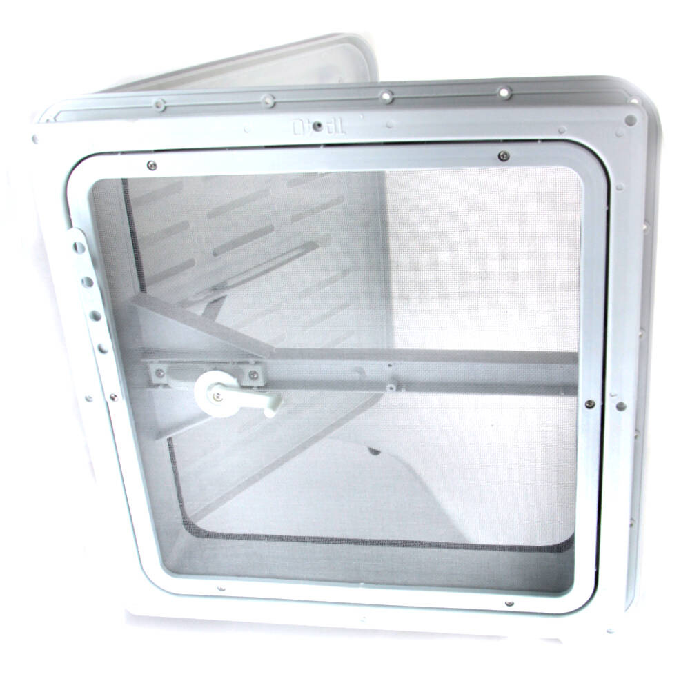 Iluminator otwierany za pomocą korby. Wbudowana moskitiera. Podwójna kopułka antykondensacyjna jest zbudowana z materiału odpornego na promieniowanie UV.