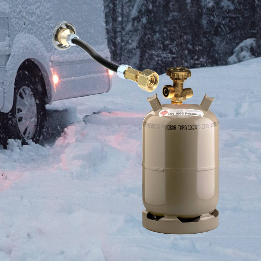 Wąż umożliwia sprawdzenie instalacji pod kątem szczelności bez konieczności napełniania zbiornika, butli dzięki możliwości podłaczenia zewnętrznej butli propanem na czas testów.