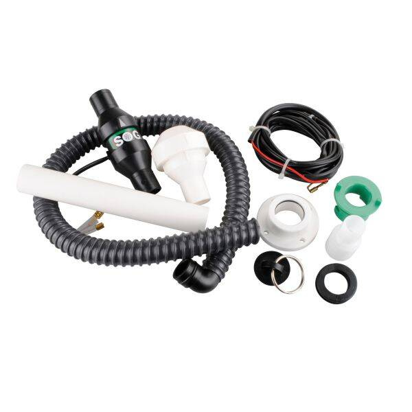 Wersja podłogowa: Kompaktowa jednostka SOG II oferuje różnorodne opcje wentylacji. Z wymiennym wkładem filtracyjnym, w którym znajduje się wentylator, jednostka może być umieszczona do trzech metrów od toalety i wentylowana przez podłogę (np. w garażu, pod ławką, w fałszywej podłodze lub w schowku). Idealna dla przyczep kempingowych z drzwiami serwisowymi toalety otwierającymi się do przedsionka. Jednostka filtrująca neutralizuje zapachy, a prosta instalacja umożliwia elastyczne miejsca montażu.