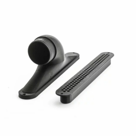Wylot powietrza do podłączenia pod kątem 90° do przewodu ciepłego powietrza 60 mm. Montaż w ściankach o grubości od 14 mm. Pokrywa wylotu przykręcana, do wyboru 5 modeli pokrywy. Dzięki podłużnemu kształtowi wylot powietrza idealnie nadaje się do montażu w listwie przypodłogowej lub pod szafką.