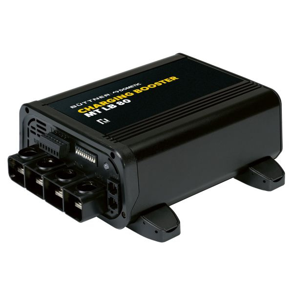 Ładowarki Dometic Büttner Booster z serii MT LB to wydajne ładowarki DC, które charakteryzują się wysoką wydajnością również w połączeniu z inteligentnymi alternatorami (Euro 6). Wysokie prądy ładowania (do 80 A) sprawiają, że ładowarki impulsowe idealnie nadają się do szybkiego ładowania akumulatorów litowych lub tradycyjnych systemów o dużej pojemności. Technologia buck booster stabilizuje ładunek, a urządzenia do ładowania booster idealnie sprawdzają się we wszystkich pojazdach, w których ważne jest szybkie i prawidłowe ładowanie akumulatorów dowolnej technologii: LiFePO4, AGM, żelowych, mokrych. Wszystkie ładowarki MT korzystają z inteligentnego systemu OPTICHARGE, który ładuje akumulatory wyjątkowo wydajnie i delikatnie. Automatycznie wybiera odpowiednią metodę ładowania dla każdego typu akumulatora i wykorzystuje specjalnie opracowany algorytm do dokładnego monitorowania i dostosowywania poziomu naładowania akumulatora. Poprawia to wydajność akumulatora i wydłuża jego żywotność. Wzmacniacz ładowania MT to jedyne urządzenie na rynku wyposażone w złącze AUX, które umożliwia integrację MT LB z pojazdami z istniejącymi systemami ładowania. Dzięki N-Bus wzmacniacz ładowania MT można optymalnie zintegrować z siecią Dometic N-Bus. W przypadku urządzeń MT LB można wybrać maksymalny prąd ładowania. Napięcie wyjściowe wynosi zawsze 12 woltów.