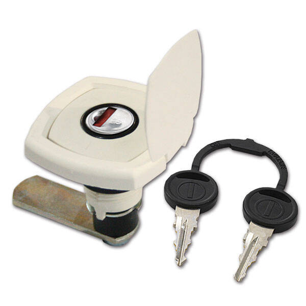 Zamek 1049 kwadratowy z pokrywą Zadi.Kolor biały.Z kluczem i cylindrem.